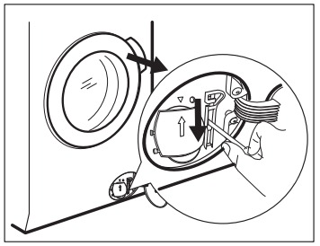 U některých spotřebičů lze dveře otevřít v nouzi zatažením za táhlo pomocí šroubováku nebo podobného nástroje. Pokud je spotřebič vybaven funkcí nouzového uvolňovače, je tato součást umístěna vedle filtru textilních vláken. Viz také úplný popis v uživatelské příručce.